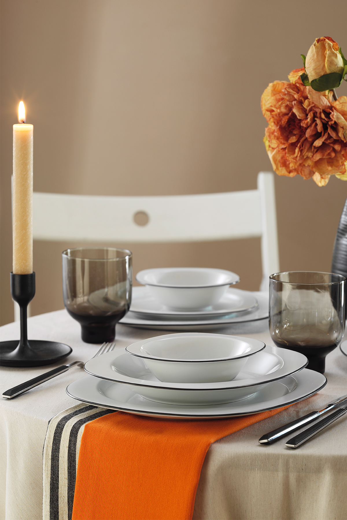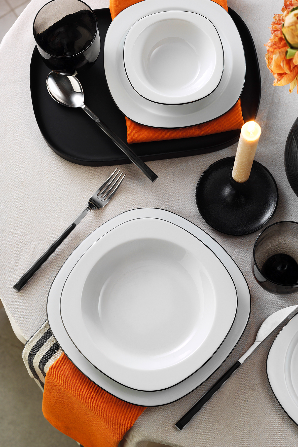 Kütahya Porselen 24 Parça 6 Kişilik Yemek Takımı Siyah File