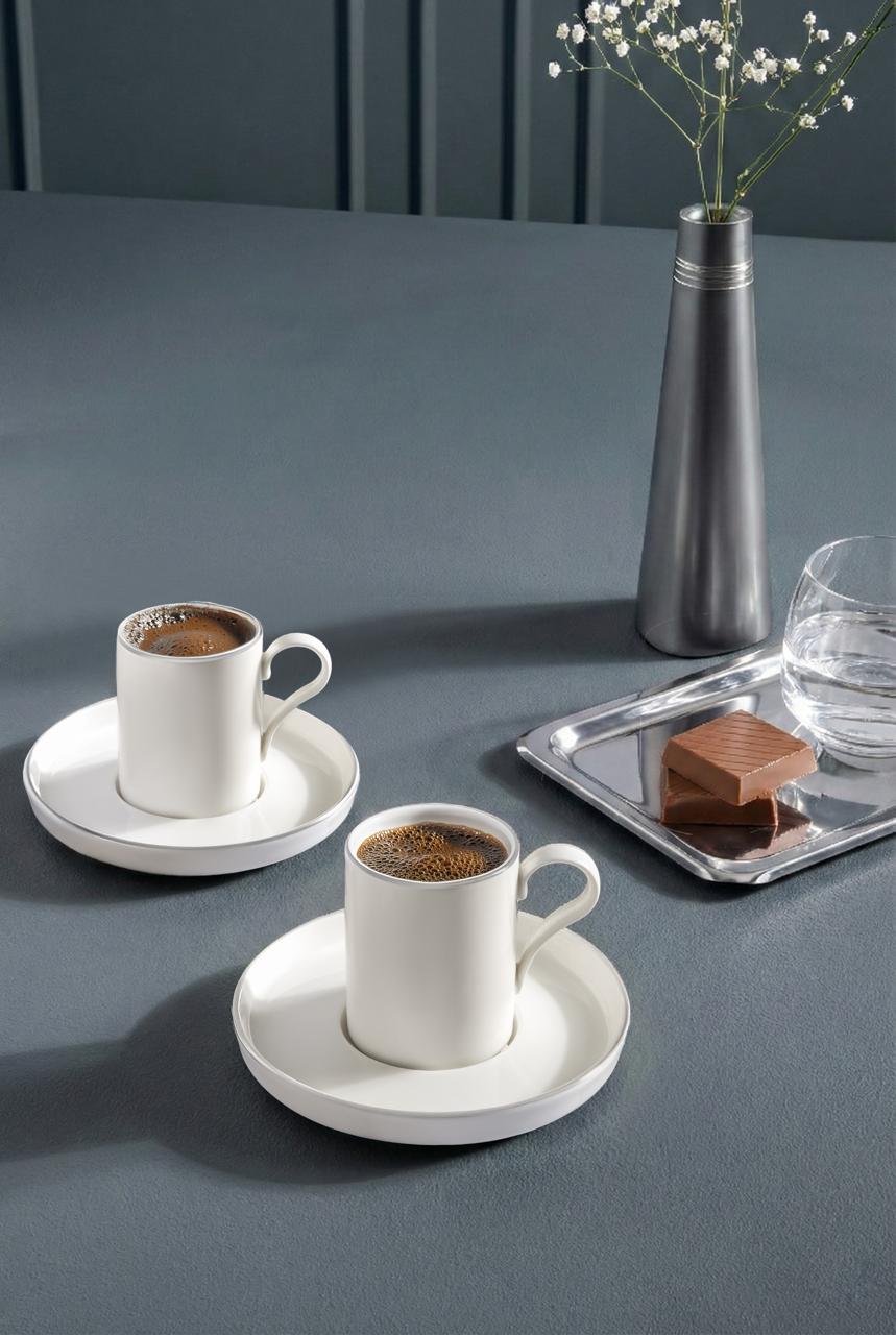 Kütahya Porselen Bone Desire 4 Parça 2 Kişilik Kahve Takımı Platin
