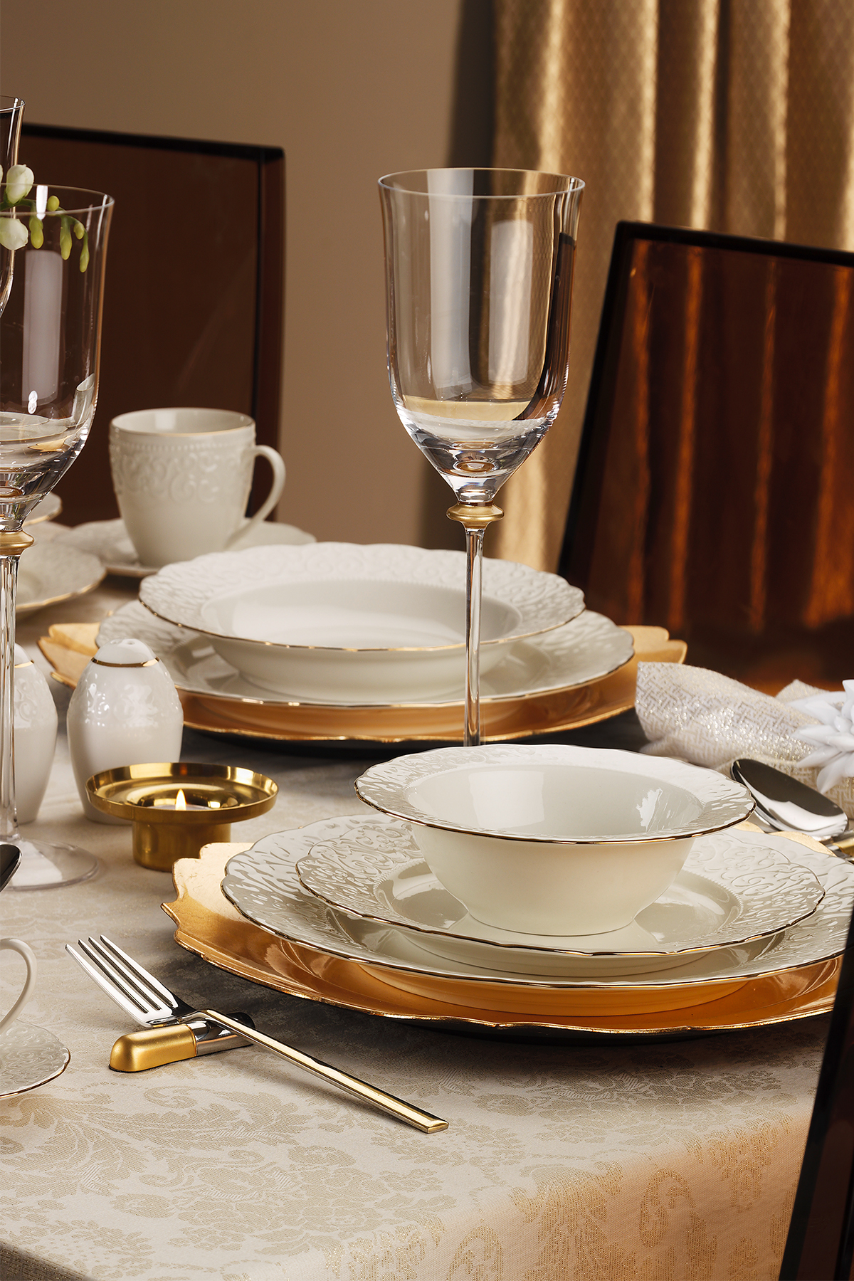 Gelince Haber VerKütahya Porselen Bone İrem 81 Parça Yemek Takımı Tek Altın Fileli