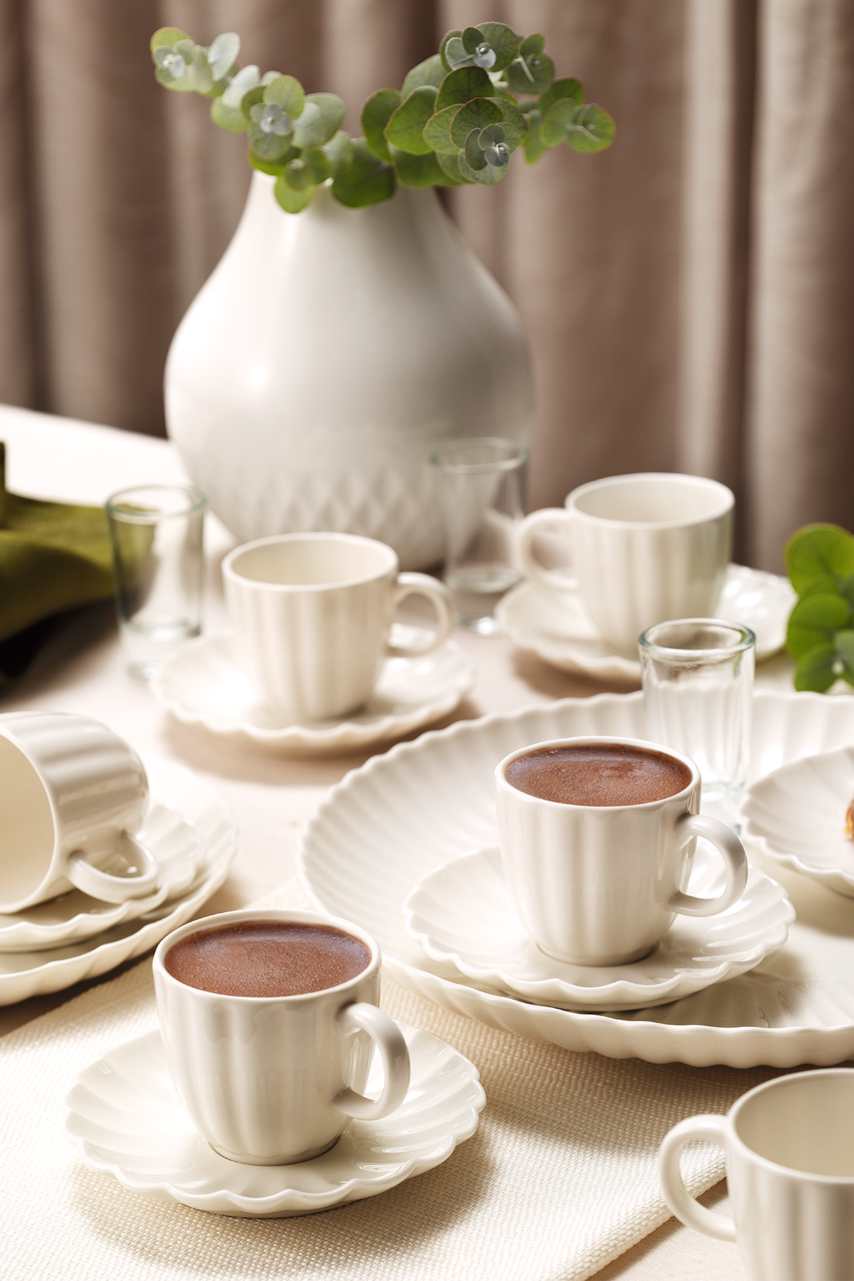 Kütahya Porselen Bone Luz Form 12 Parça 6 Kişilik Kahve Takımı