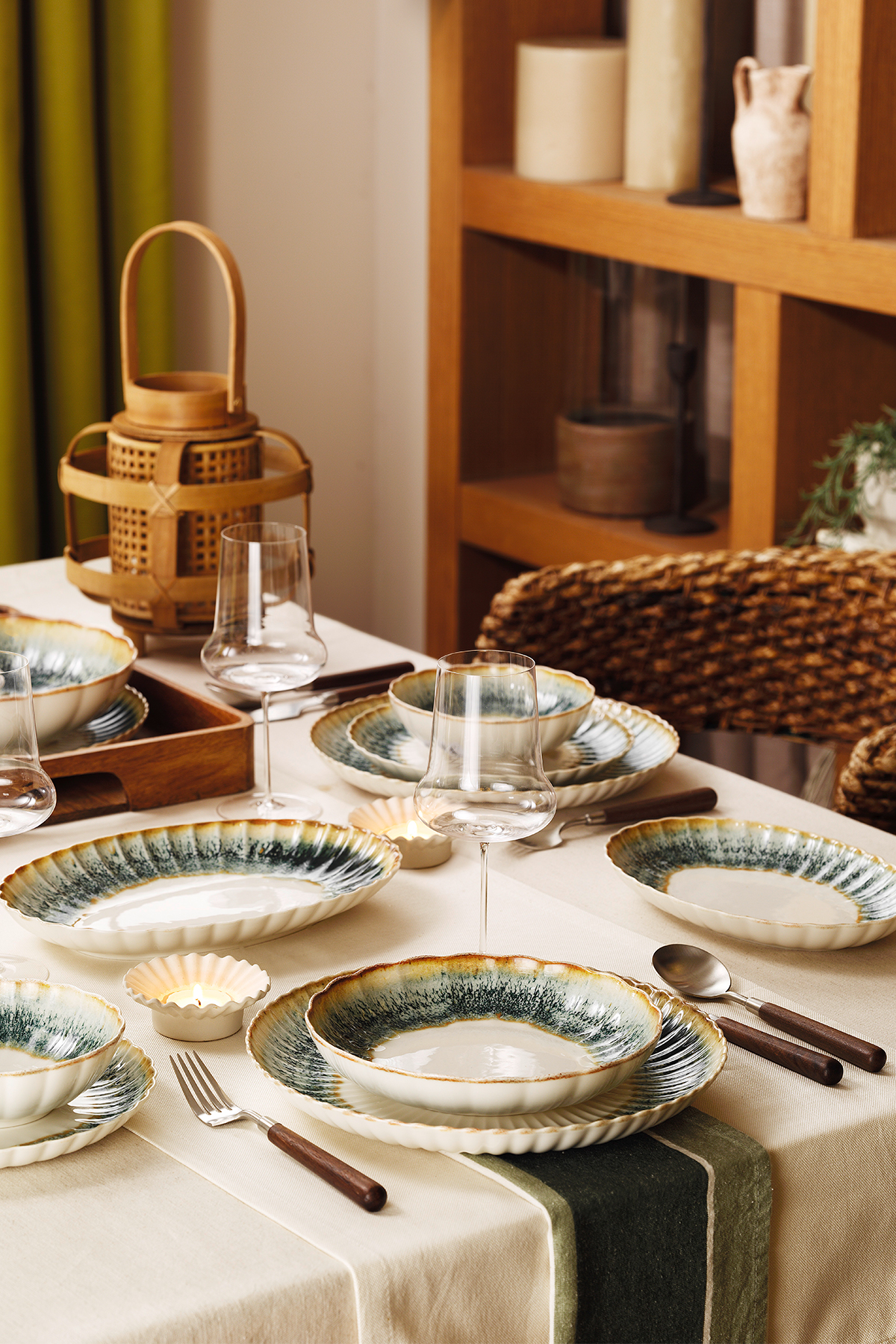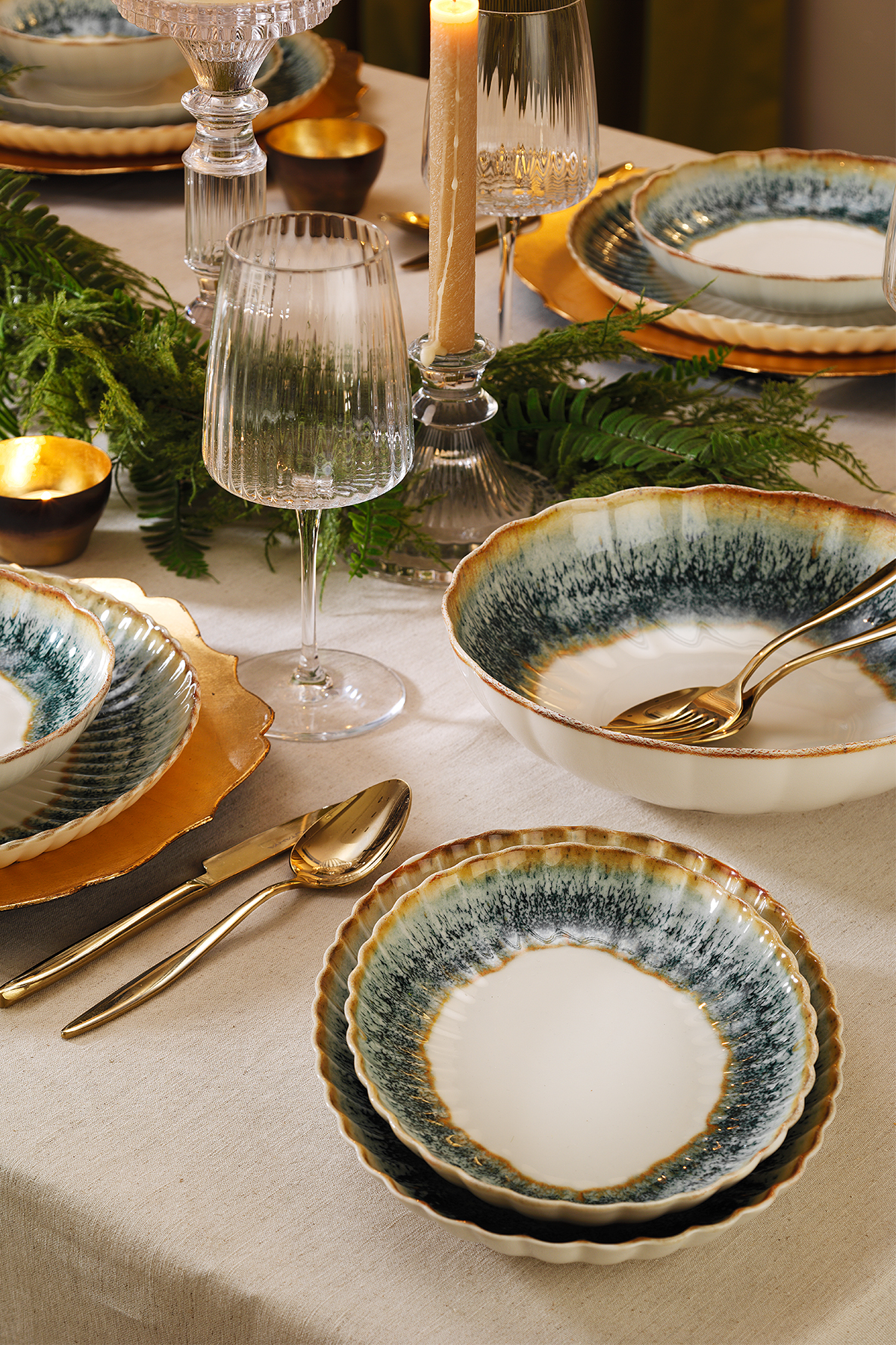 Kütahya Porselen Bone Luz Form 27 Parça 6 Kişilik Yemek Takımı Okyanus 140