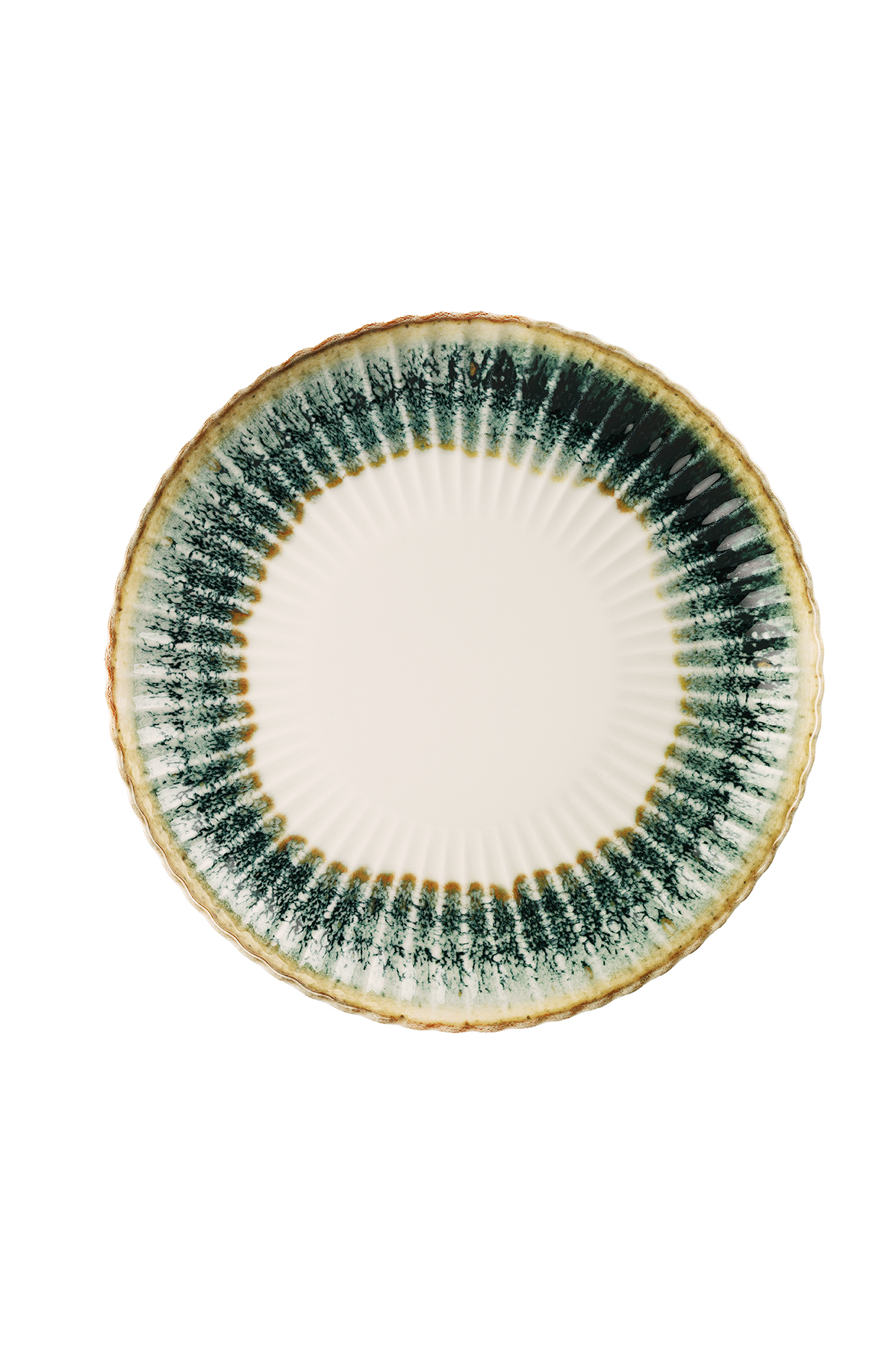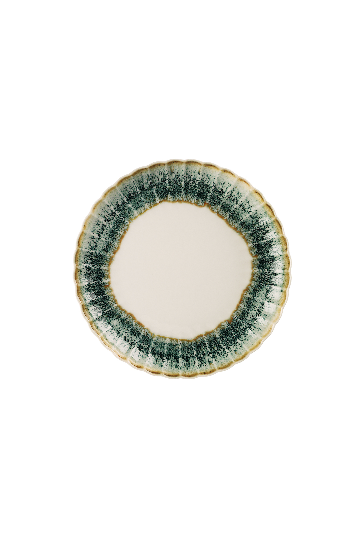 Doğanın iki temel gücünden ilham alır. Işıl ve Su. Tabağın merkezinden dışa doğru yayılan ince çizgiler, Güneş ışınlarının suya temas ettiği anı simgeler; her bir çizgi, dalgaların yüzeyindeki ışık kırılmalarını yansıtır. Çevresindeki dalgalı renk dokusu ise gelgitlerin taşıdığı mineral izleri ve yosun dokularını hatırlatır. Tıpkı doğadaki gelgitler gibi benzersiz bir iz taşır. -- Işığın suyla buluştuğu en sessiz anın tabağa yansımasıdır -- Zarif, özgün ve sakin.
