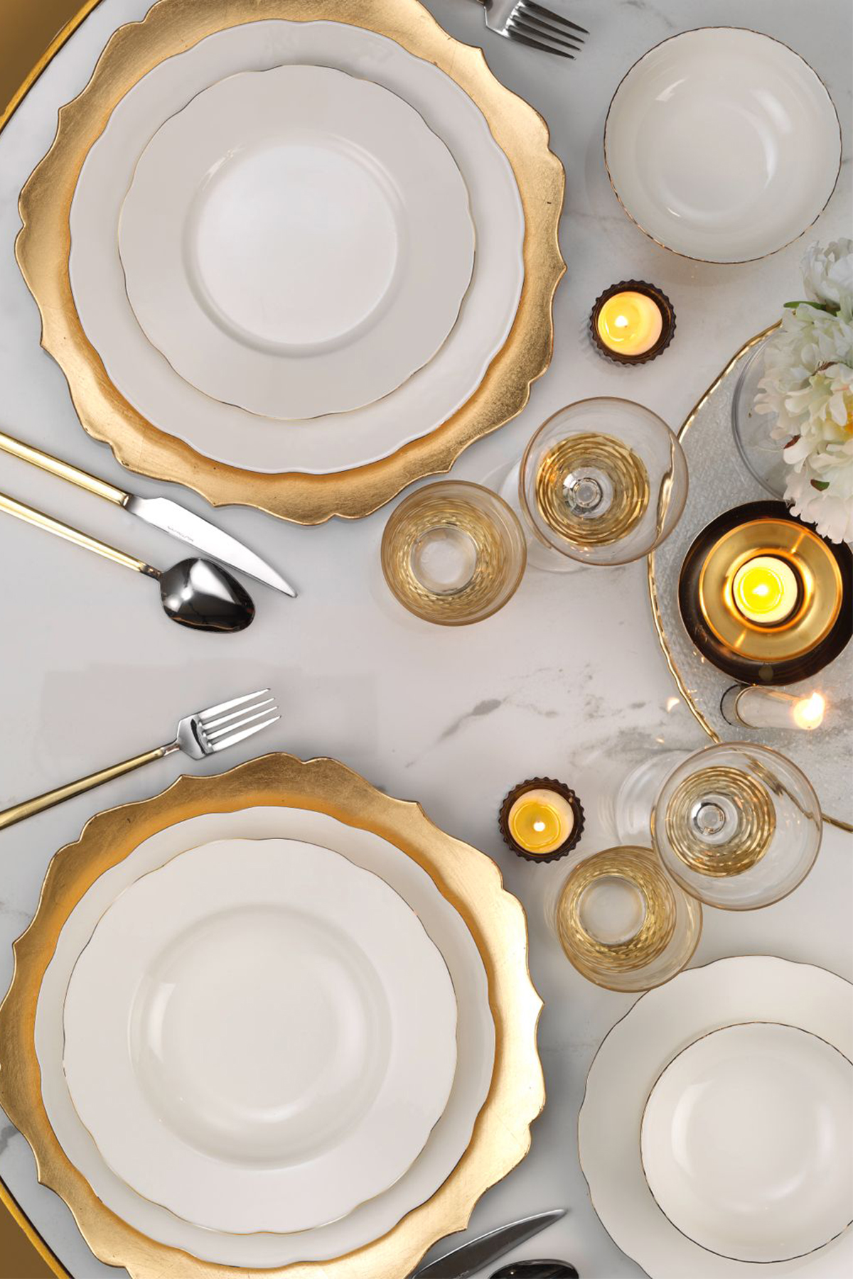 Kütahya Porselen Bone Olympos 24 Parça 6 Kişilik Yemek Takımı Altın