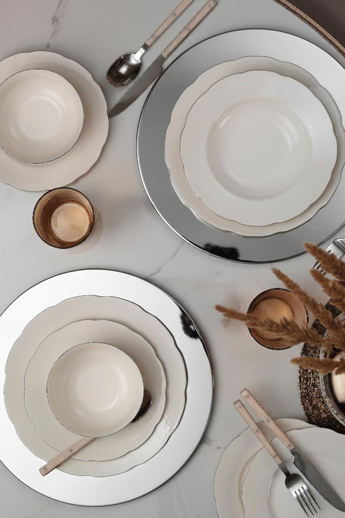 Kütahya Porselen Bone Olympos 24 Parça 6 Kişilik Yemek Takımı Platin