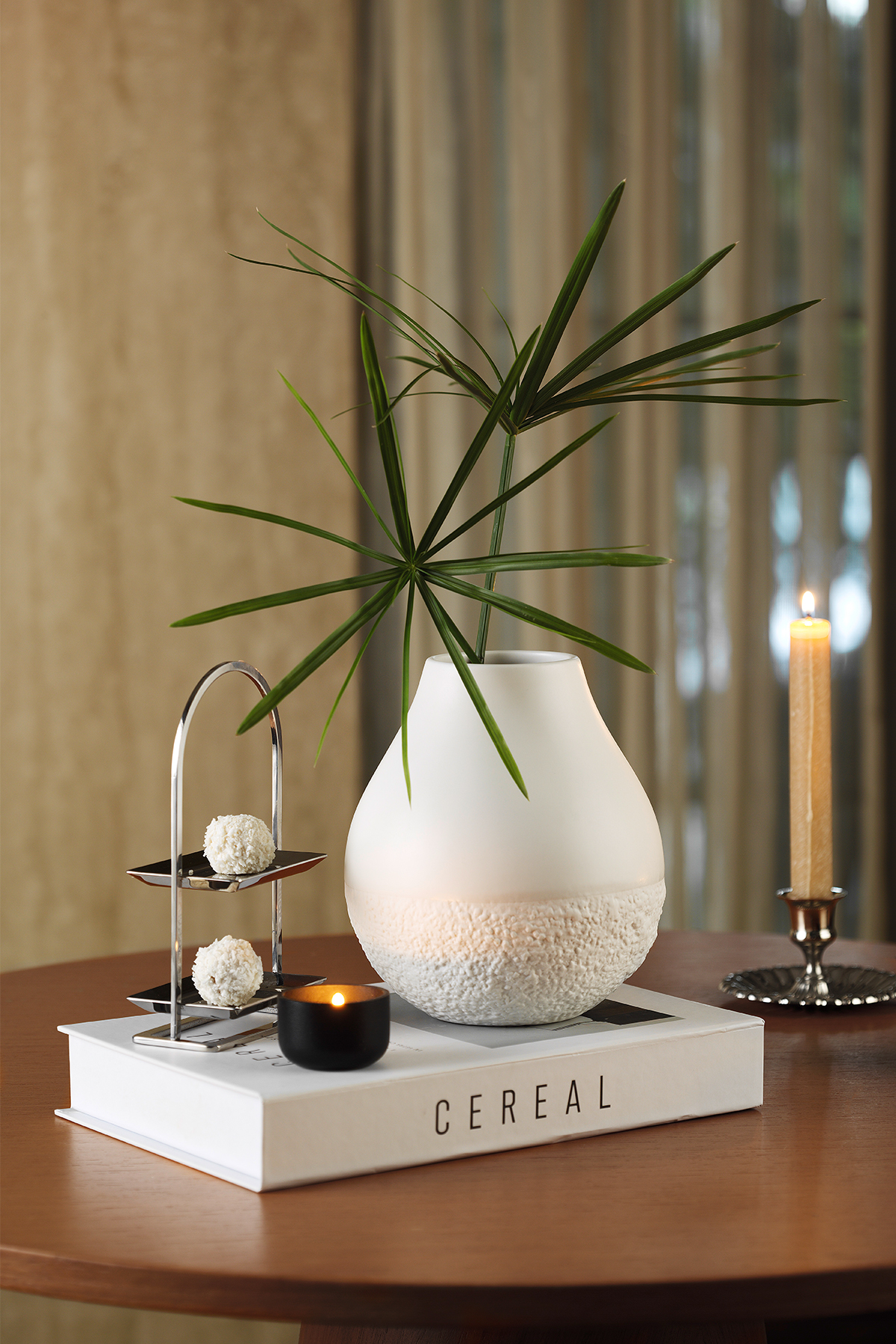 Doğadan ilham alan yumuşak formlar; rüzgârın şekillendirdiği taşları, suyun iz bıraktığı yüzeyleri ve zamanın sakin akışını hatırlatır. Kristal dokular ise ışıkla temas ettiğinde derinlik kazanan, modern yaşamın zarafetini yansıtan bir estetik sunar. Her bir obje, sadelik ile ihtişam arasındaki ince dengeyi taşır.