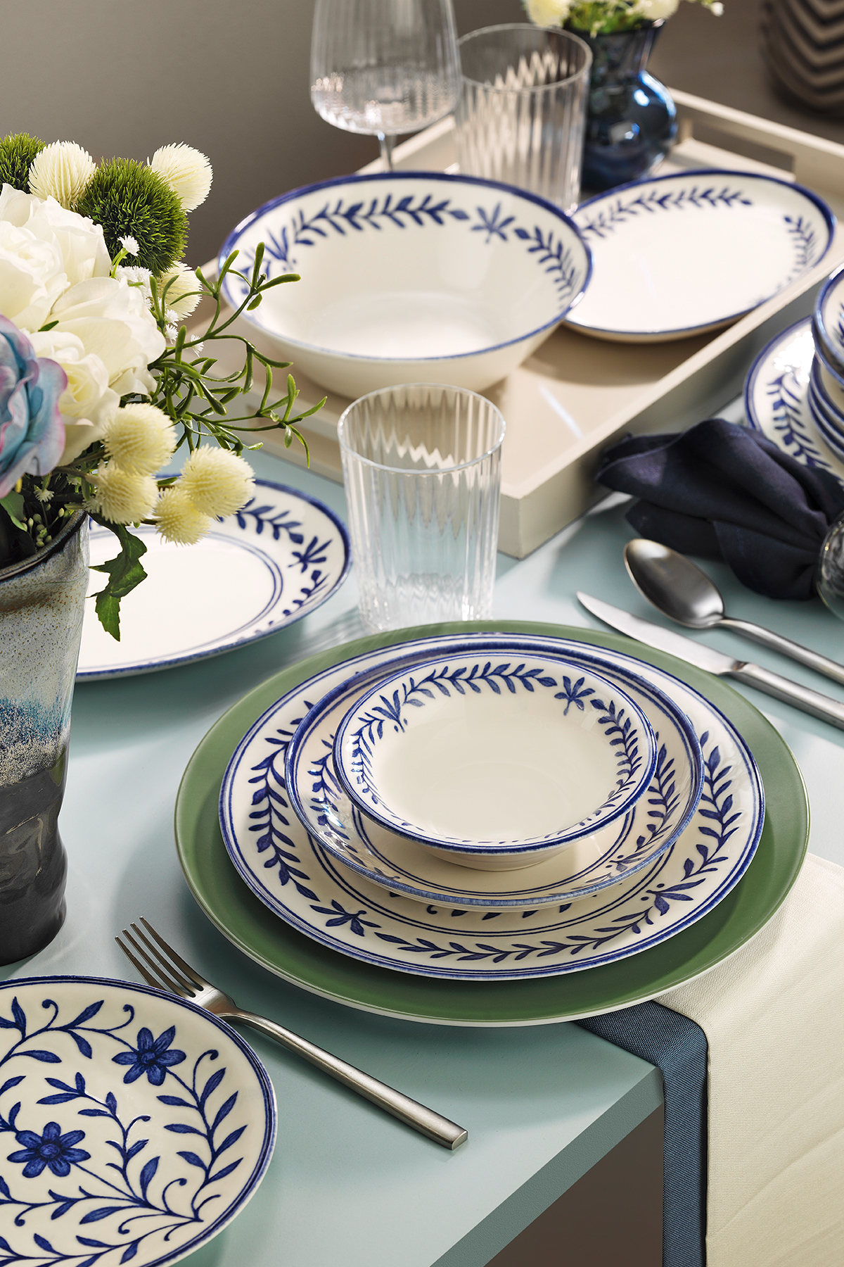 Doğadan ilham alan Flora Serisi, asırlık çiçek motiflerini modern bir yorumla yeniden hayat bulduruyor. Her tabakta, doğanın zarif dengesi ve sadeliği hissediliyor. Mavi, kahve ve yeşil tonlarıyla gökyüzünü, toprağı ve doğayı sofralara taşıyor.Flora Serisi, yalnızca bir sofra takımı değil; doğanın şıklığını günlük hayata davet eden bir koleksiyon.