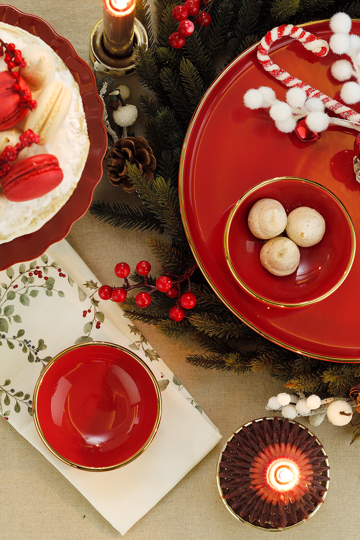 | Yılbaşı koleksiyonumuz Holyday Holyday’in renk paleti klasik yılbaşı ruhunu çağırırken modern bir sakinlik taşıyor: Derin Yeşil: Çam ağaçlarının huzuru; doğayı ve sürekliliği simgeliyor. Kırmızı: Kutlamanın kalbi; sıcaklık, canlılık ve neşeyi sofraya taşıyor. Altın İnce Çerçeve: Işığın sofradaki karşılığı. Sade formlara zarif bir “özel gün” dokunuşu ekliyor. Bu üçlü, hem nostaljik hem çağdaş bir tat yaratıyor: “her yıl aynı heyecanla kurulan ama her seferinde yeni anılarla dolan” sofralar gibi. |