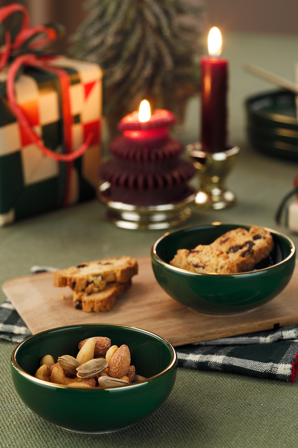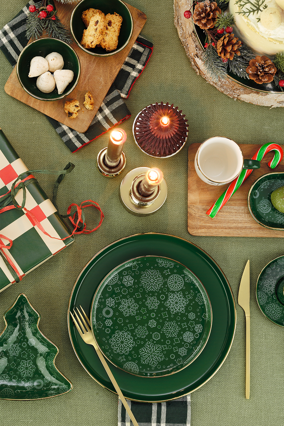 | Yılbaşı koleksiyonumuz Holyday Holyday’in renk paleti klasik yılbaşı ruhunu çağırırken modern bir sakinlik taşıyor: Derin Yeşil: Çam ağaçlarının huzuru; doğayı ve sürekliliği simgeliyor. Kırmızı: Kutlamanın kalbi; sıcaklık, canlılık ve neşeyi sofraya taşıyor. Altın İnce Çerçeve: Işığın sofradaki karşılığı. Sade formlara zarif bir “özel gün” dokunuşu ekliyor. Bu üçlü, hem nostaljik hem çağdaş bir tat yaratıyor: “her yıl aynı heyecanla kurulan ama her seferinde yeni anılarla dolan” sofralar gibi. |