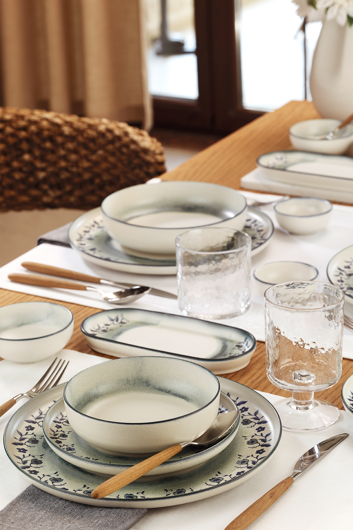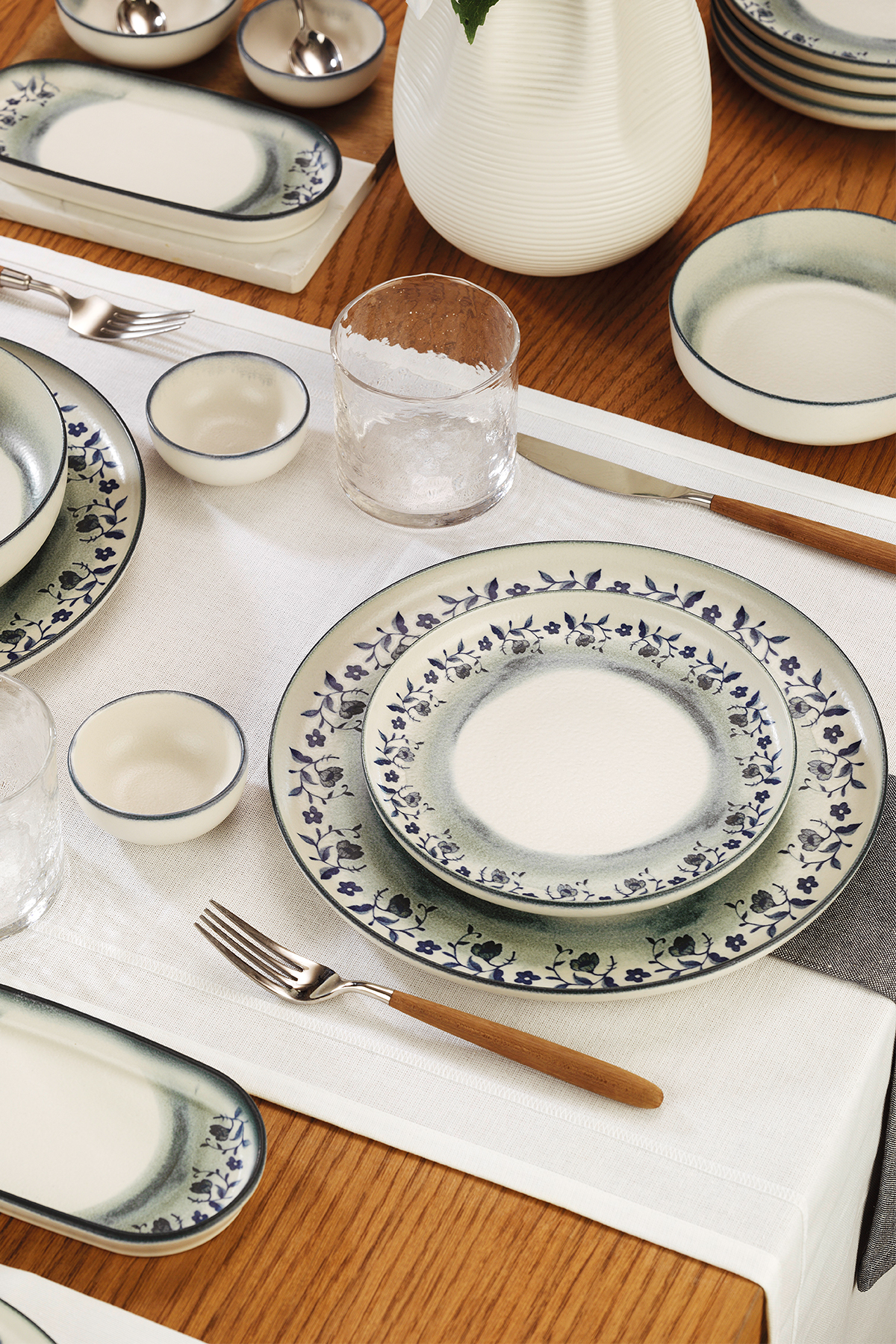 Mavinin en zarif tonuyla doğanın huzurunu buluşturan Indigo Bloom, her sabahın dinginliğini sofralara taşır.