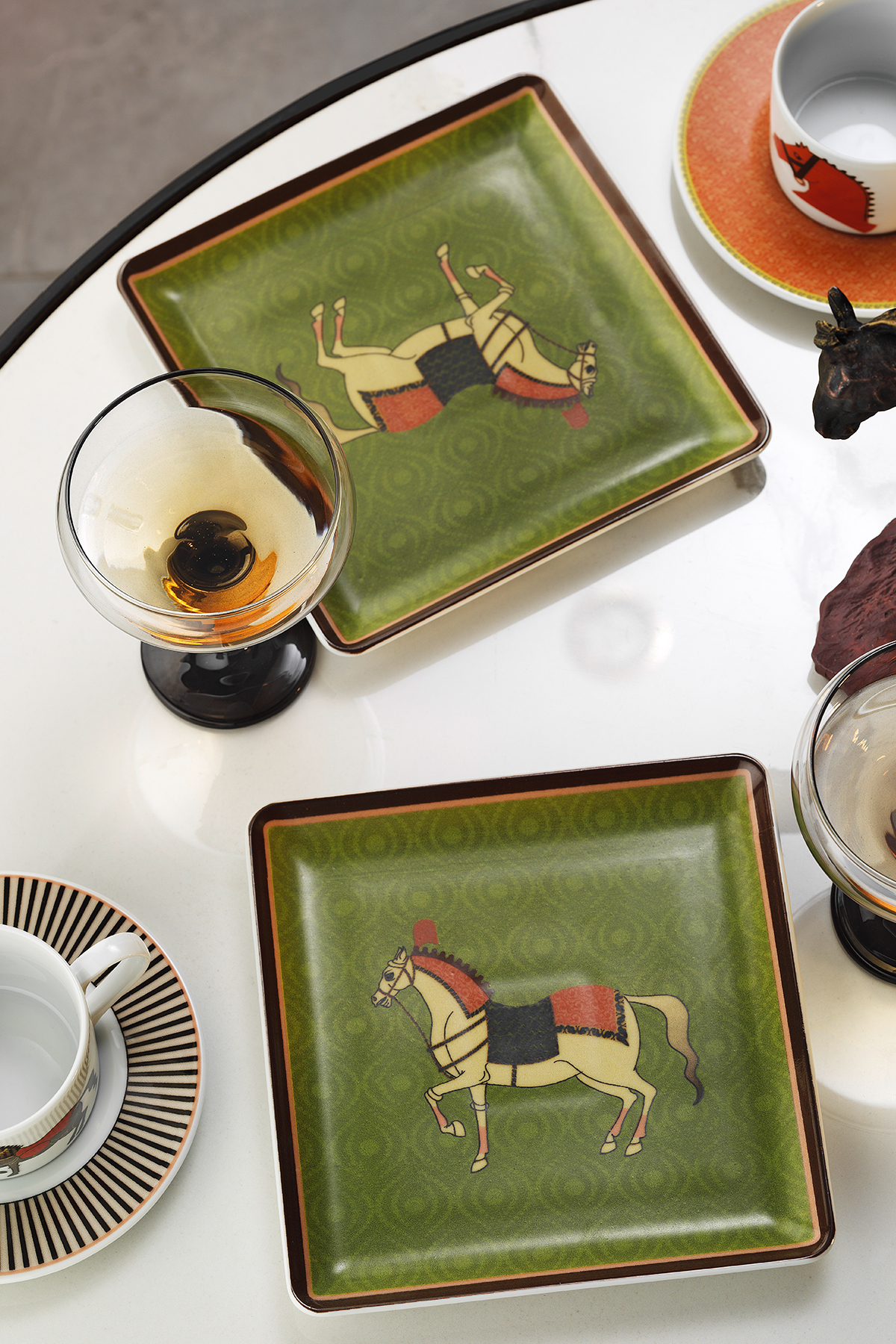Stilize at figürleriyle öne çıkan bu set,geleneksel sanatın, huzur veren dokunuşunu ikramlarınıza taşır.Her parça tarihsel bir anlatının modern yorumudur.