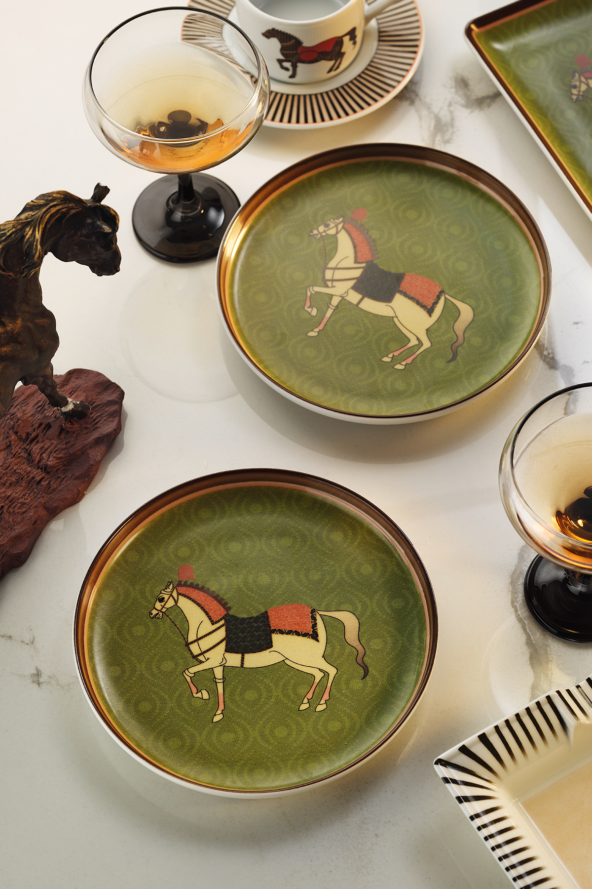 Stilize at figürleriyle öne çıkan bu set,geleneksel sanatın, huzur veren dokunuşunu ikramlarınıza taşır.Her parça tarihsel bir anlatının modern yorumudur.