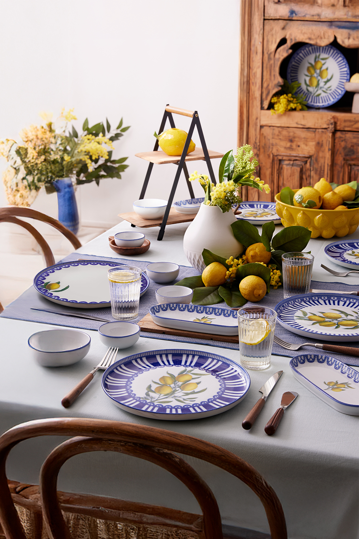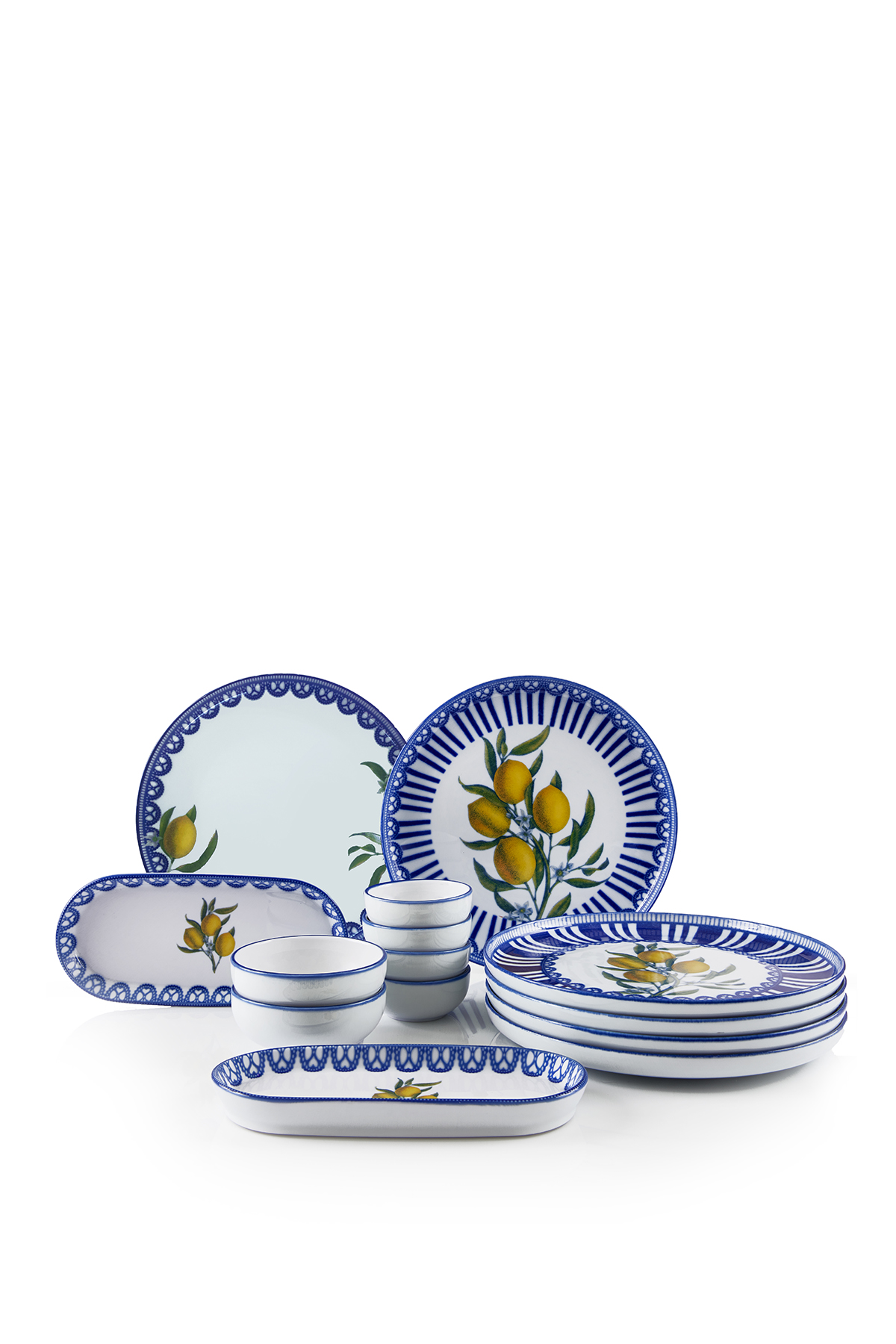 Güneşin aydınlattığı Akdeniz bahçelerinden ilham alan Lemon Charm, sofralara tazelik ve canlılık getiriyor. Mavi-beyazın zarif uyumu içinde canlanan limon motifleri, yazın enerjisini ve doğanın saf cazibesini yansıtıyor. Neşeli, ferah ve zamansız bir şıklık sunan bu seri, her buluşmayı keyifli bir sofraya dönüştürüyor.