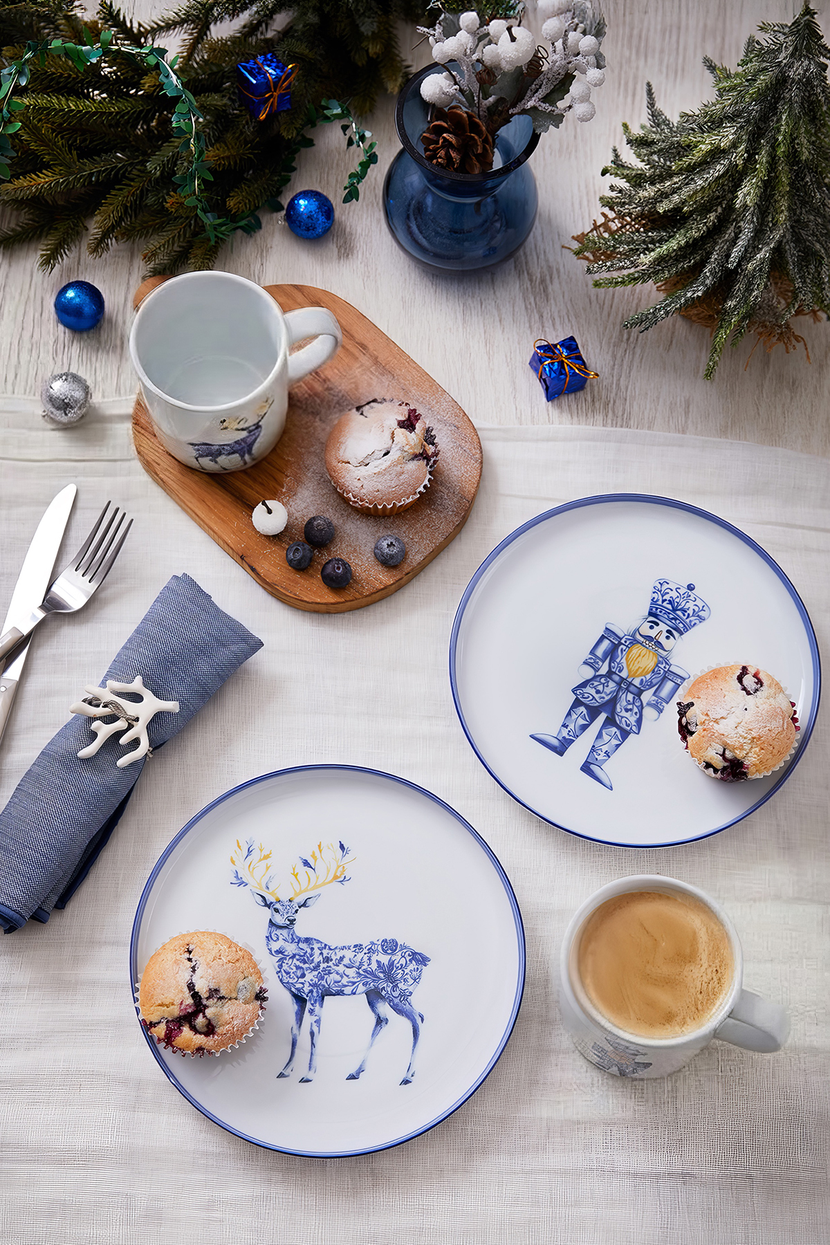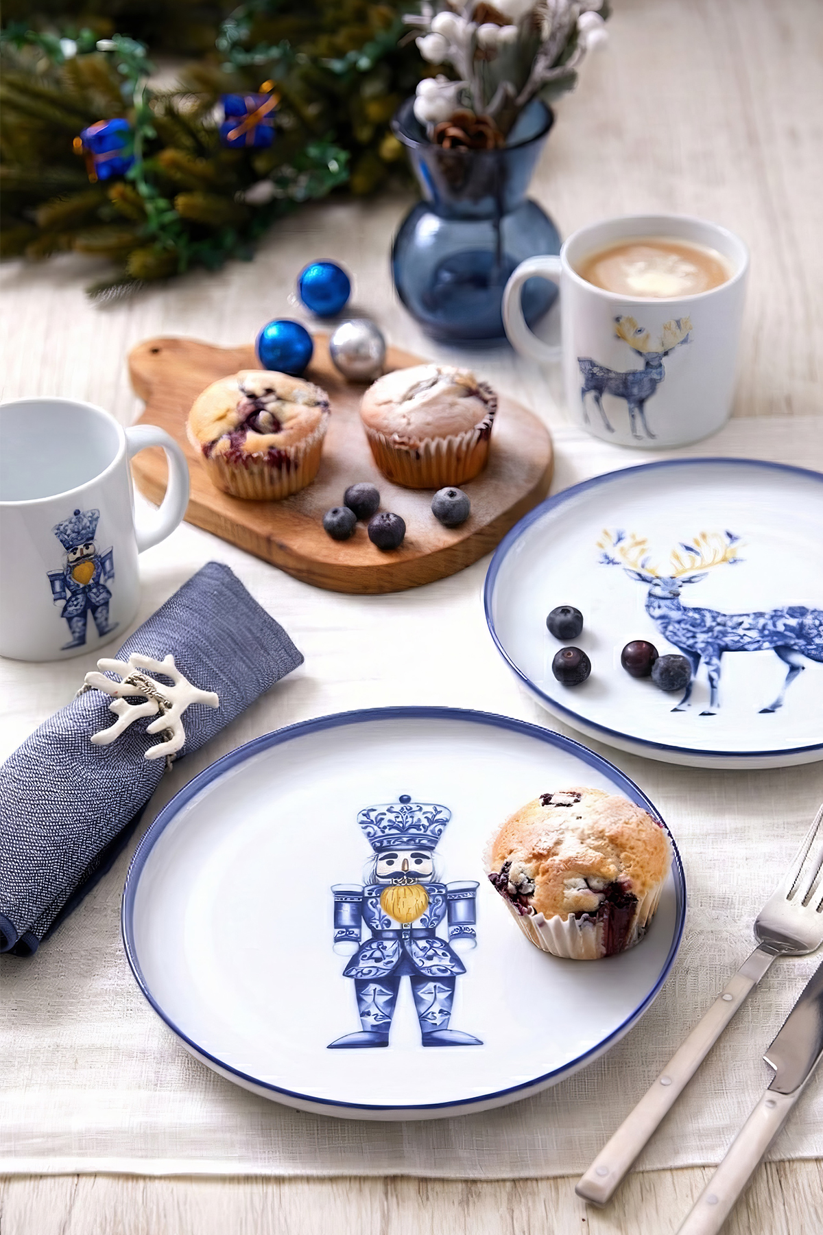 ''YENİ YILIN MAVİ IŞIĞI'' Koleksiyonu , yılın en heyecanlı zamanlarında soğuk kış tonlarını zarif bir ışıltıyla buluşturur. Koleksiyondaki mavi asker ve asil geyik figürleri, yeni yılın umut veren ruhunu ve taze başlangıç hissini sofralara taşır. Her parça, yeni yıl akşamının mavi ışıklarla süslü sokaklarını, sessizce yağan karın huzurunu ve yılbaşı gecesinin büyüsünü yansıtarak sofralarınıza şık, modern ve masalsı bir yeni yıl atmosferi katar.