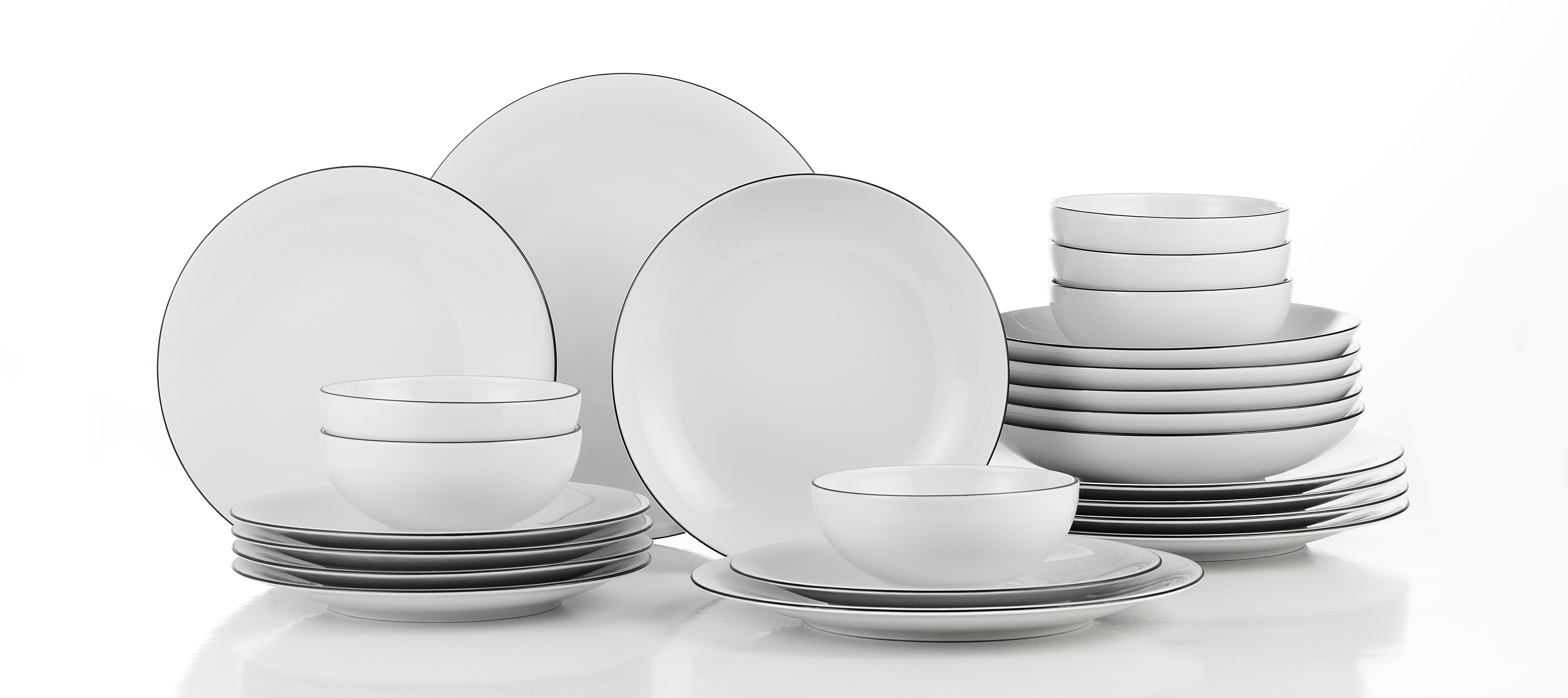 6 Adet 25 cm Servis Tabağı,6 Adet 21 cm Çukur Tabak,6 Adet 21 cm Pasta Tabağı,6 Adet 13 cm Kase den Oluşmaktadır.